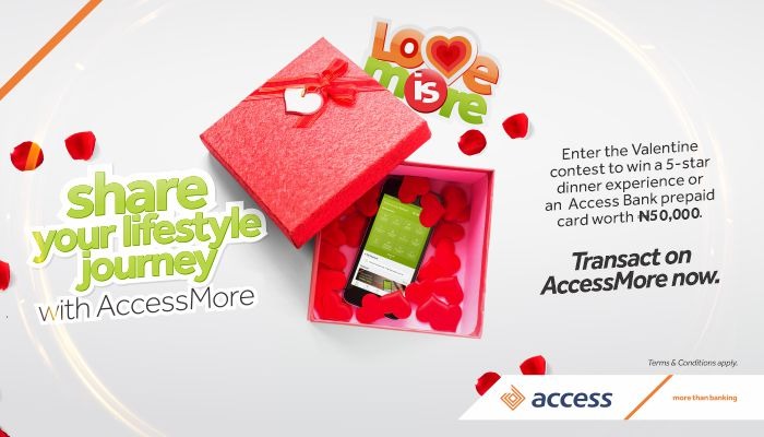 “All you have to do to stand a chance of being selected is to upload a short video on Instagram or Facebook sharing your Valentine’s love story and why you deserve this special date night and a feature of AccessMore that is beneficial to you as a couple using the hashtag #MyAccessMoreValetineStory. We will also select and reward 20 single individuals with a prepaid card loaded with N50,000 each when they upload a short video on Instagram or Facebook sharing their experience using AccessMore’s lifestyle features with #MyAccessMoreValetineStory.