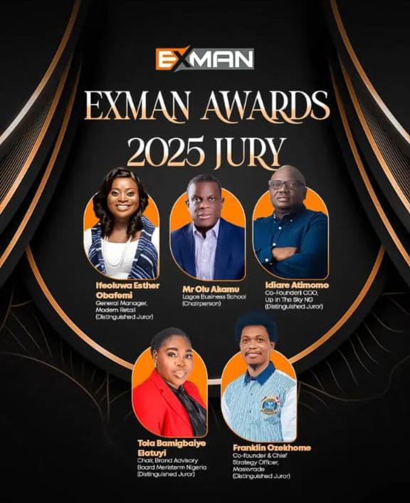 As part of preparation for its Annual General Meeting and prestigious Awards for Excellence, the Experiential Marketers Association of Nigeria (EXMAN) has named industry experts, Olu Akanmu, Academic Director, Lagos Business School; Ifeoluwa Esther Obafemi, General Manager, Modern Retail; Idiare Atimomo, Co-Founder and COO at Up In The Sky NG; Dr. Tola Bamigbaiye Elatuyi, Chair, Brand Advisory Board, Meristerm Nigeria and Franklin Ozekhome, Co-founder & Chief Strategy Officer at Maskvrade, as members of its 2025 awards jury.