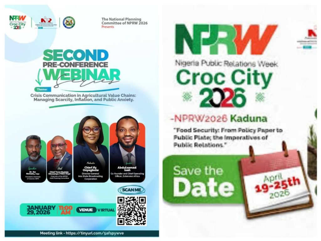 Nigeria Public Relations Week (NPRW) CROC CITY 2026 will be held in Kaduna from April 19 to 25, 2026, in partnership with the Kaduna State Government. The week-long event, themed “Nigeria’s Food Security: From Public Policy to Public Plates – The Imperatives of Public Relations,” will explore how public relations can address national challenges, from food security to policy communication and crisis management..
