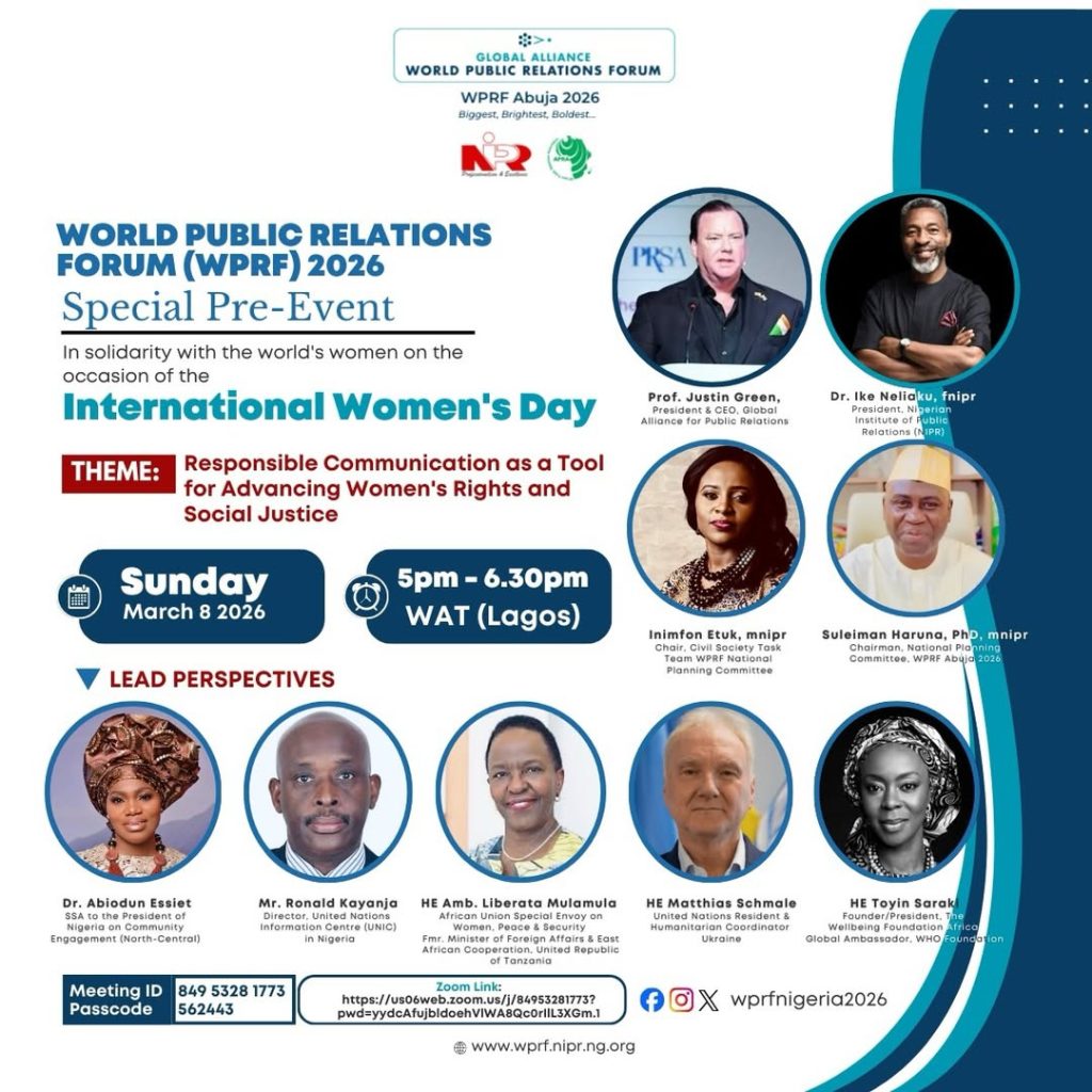 Organisers of the World Public Relations Forum 2026 have announced a special pre-event to commemorate International Women’s Day, focusing on the role of responsible communication in advancing women’s rights and social justice.